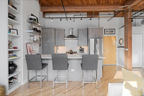 MAGAZINE CALIBER RECENTLY RENOVATED 1 BED 1 BATH ALMOST 900 SQFT SOUTH FACING PENTHOUSE LOFT STEPS FROM THE BEST RESTAURANTS AND SHOPPING IN THE CITY ALONG W/ PUBLIC TRANS, PARKS, ETC IN SOUGHT-AFTER FULL AMENITY WEST LOOP BUILDING W/ GYM, BUSINESS CENTER, DOOR STAFF, ETC; THE LARGE OPEN KITCHEN FEATURES CUSTOM FLAT CABINETRY, STAINLESS STEEL APPLIANCES AND MASSIVE ISLAND OVERLOOKING THE 20+ FEET WIDE ULTRA BRIGHT LIVING AREA W/ DESIGNATED DINING SPACE W/ HARDWOOD FLOORS T/O; THE PRIVATE BALCONY W/ CITY VIEWS IS RIGHT OFF THE LIVING AREA ALLOWING FOR SEAMLESS INDOOR/OUTDOOR ENTERTAINING; GREAT SIZE PRIMARY BEDROOM W/ PROFESSIONALLY ORGANIZED WALL-TO-WALL CLOSET SPACE W/ SHARED RENOVATED OVERSIZED SHOWER PRIMARY BATH; TRUE LAUNDRY ROOM W/ TONS OF STORAGE SPACE; PRIVATE STORAGE SPACE ON THE SAME FLOOR; 2-CAR TANDEM HEATED GARAGE PARKING ADDITIONAL $25K