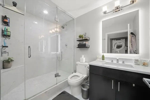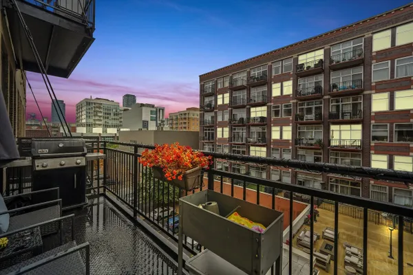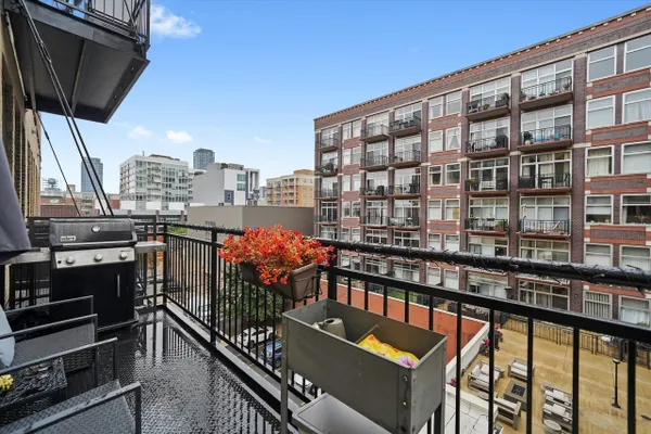 Welcome to this stylishly updated 1BD/1BA condo in one of West Loop's most desirable full-amenity buildings! This bright and spacious 4th-floor unit features soaring ceilings, a large private balcony, and an open-concept living/dining area perfect for entertaining. The kitchen was fully renovated in 2022 with sleek new cabinets, countertops, appliances, and a breakfast bar. Gorgeous hardwood floors were sanded and re-stained in 2022. The quiet bedroom has no shared walls and offers a generous walk-in closet. In-unit laundry and storage unit (064) included. Full-amenity building with 24-hr door staff, on-site management, fitness center, yoga room, theatre, business center, conference room, and party room with kitchen, grills, and pool table. Unbeatable location near parks, restaurants, shopping, transit, and expressways. Heated garage parking available for $25K (space P-137).